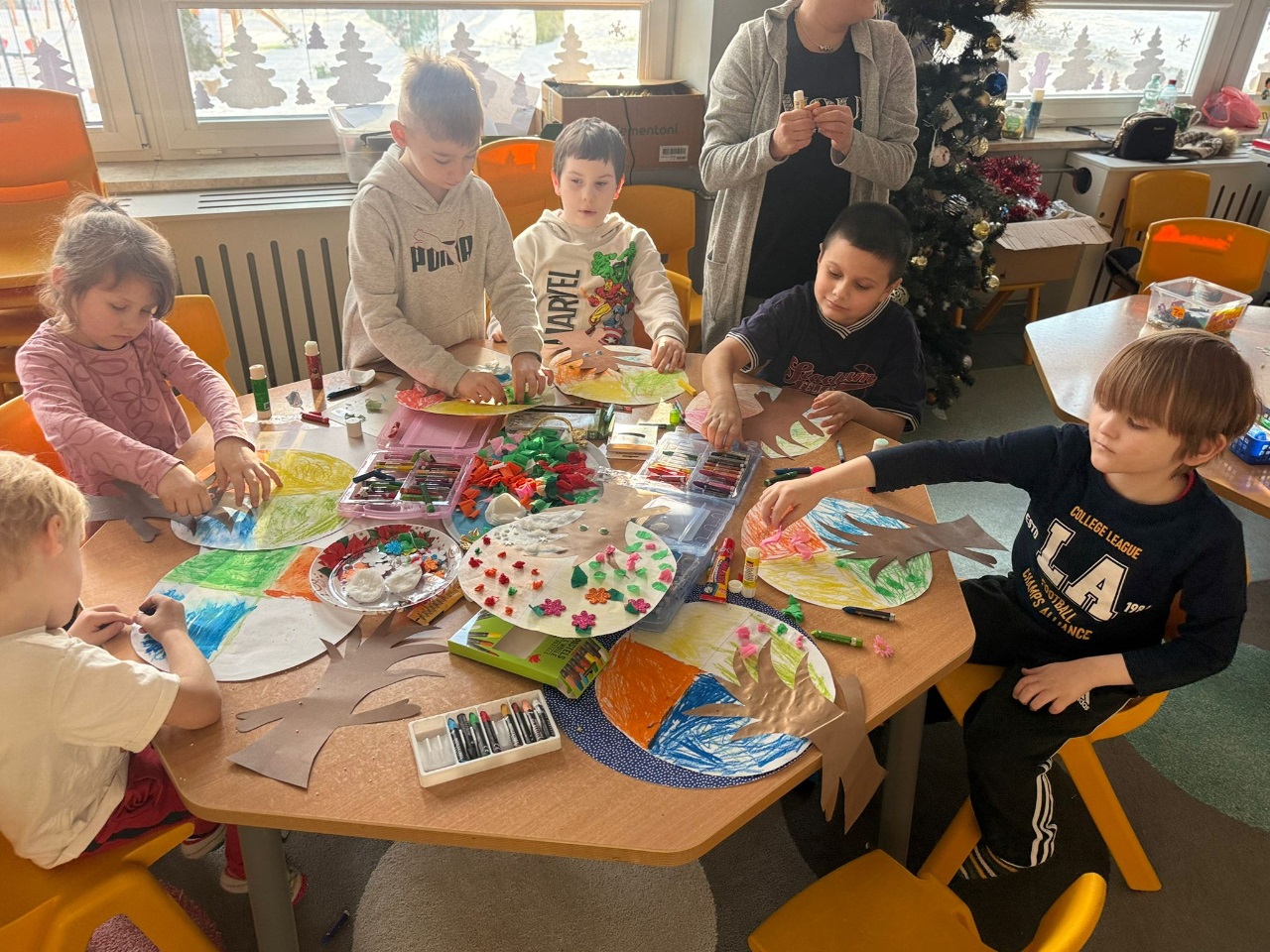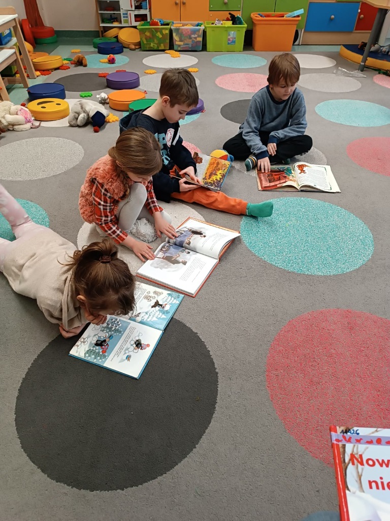 Dzieci z oddziału przedszkolnego przystąpiły we wrześniu do ogólnopolskiego projektu czytelniczo - ekologicznego pod tytułem "Książka o każdej porze roku". Jego organizatorem jest Biblioteka Motyli ze Szkoły Podstawowej nr 2 w Bolszewie. Po zrealizowanym w październiku module jesiennym, dziś sfinalizowano moduł zimowy projektu. Dzieci z zainteresowaniem przeglądały dostępne w bibliotece szkolnej książki o tematyce zimowej. W skupieniu wysłuchały opowiadania pt. "Nowy przyjaciel niedźwiadka". Przy wsparciu pań nauczycielek wykonały tematyczne prace plastyczne. Piękna, mroźna, zimowa aura sprzyjała również zabawie na białym puchu. Z utęsknieniem czekamy jednak na cieplejszy wiosenny okres i realizację kolejnego modułu projektu.